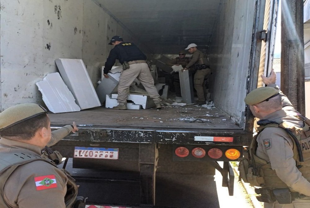 Com base na troca de informações entre as forças de segurança, os agentes localizaram e abordaram o caminhão suspeito na rodovia estadual SC-108.