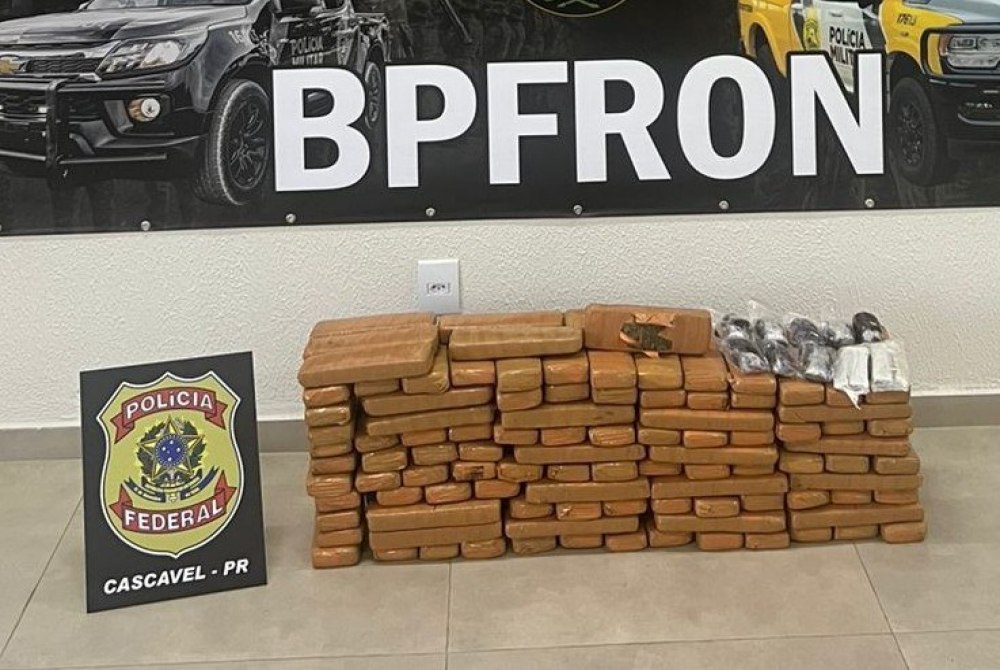 A abordagem ocorreu nas proximidades do município de Santa Tereza do Oeste, durante fiscalização de rotina. No interior do automóvel, foram localizadas três malas contendo aproximadamente 74 kg de maconha e 1 kg de haxixe.