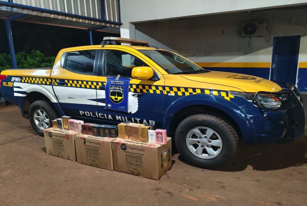 Durante a vistoria no compartimento de carga, os policiais identificaram três caixas com peso excessivo, fato que gerou suspeita. A documentação apresentada indicava o transporte de apenas cinco unidades de perfume, porém a quantidade informada era incompatível com o tamanho e o peso dos volumes.