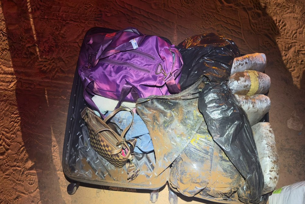 Na mala foram encontrados 11 quilos de substância análoga à maconha do tipo skunk, divididos em 10 invólucros.